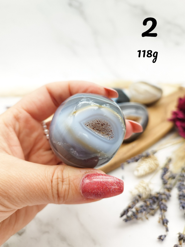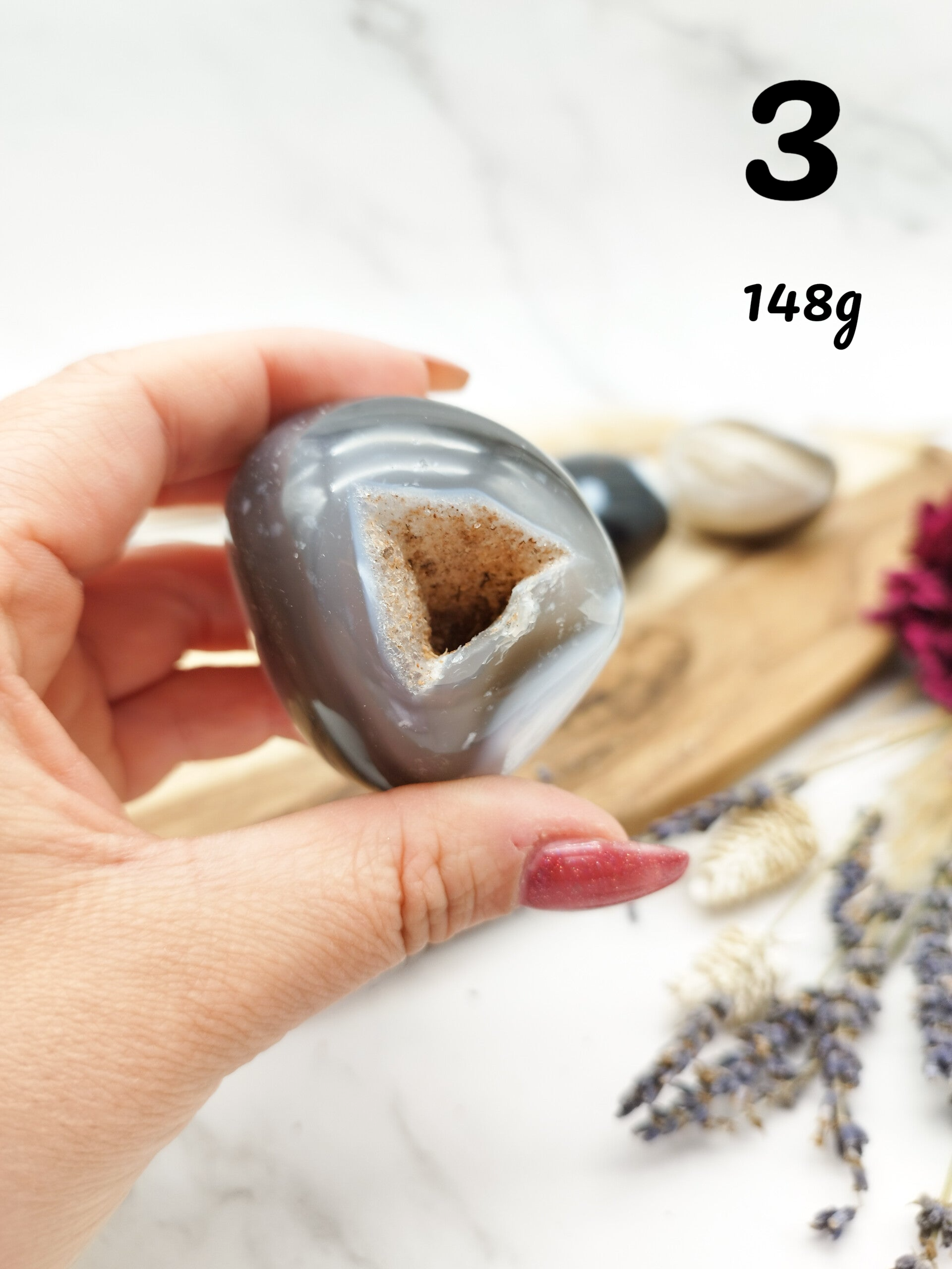 Orca / Orka Achat, Jumbo Trommler Druzy