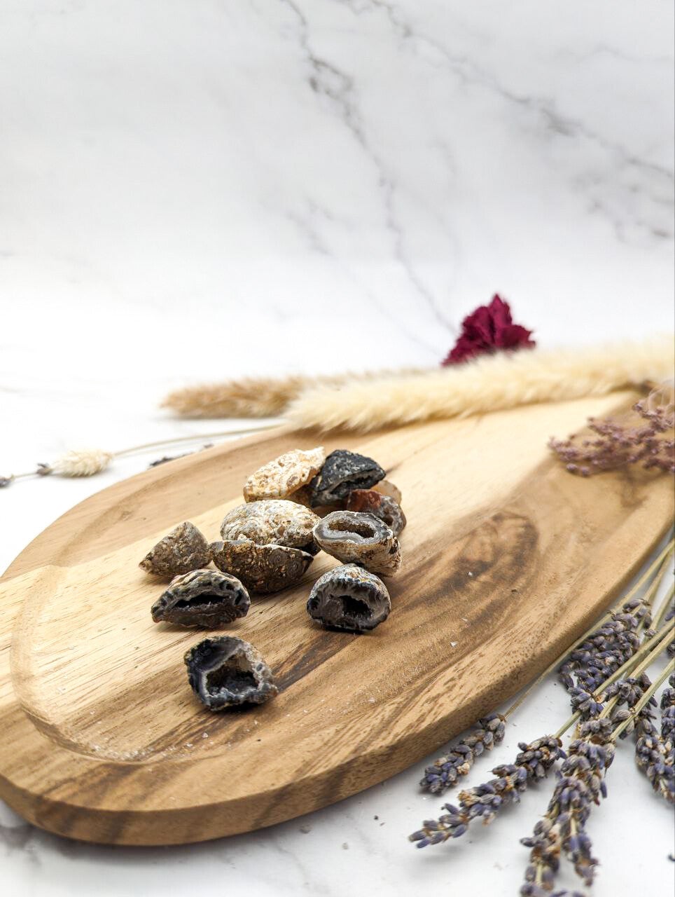 Es wird gesagt, dass eine Druzy Achat Geoden Hälfte dabei helfen kann, das emotionale Wohlbefinden zu verbessern und die spirituelle Entwicklung zu unterstützen, indem sie das Herzchakra aktiviert und die innere Heilung fördert.