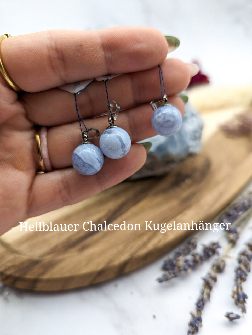 Einzigartiger hellblauer Chalcedon-Kugel-Anhänger
