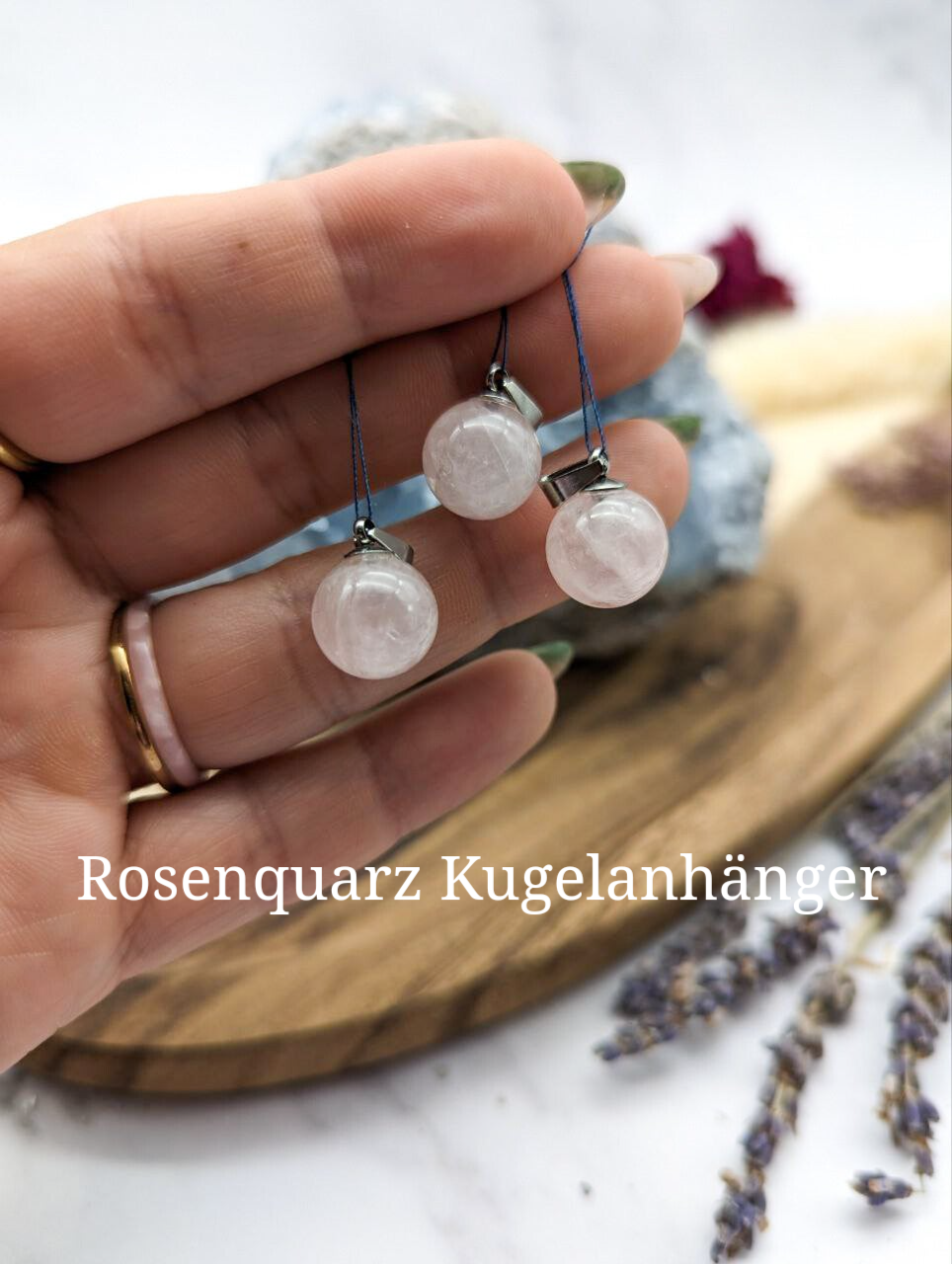 Dieser zauberhafte Rosenquarz-Kugel-Anhänger strahlt Liebe und Harmonie aus. Die zarte rosa Farbe macht jeden Anhänger zu einem besonderen Stück.