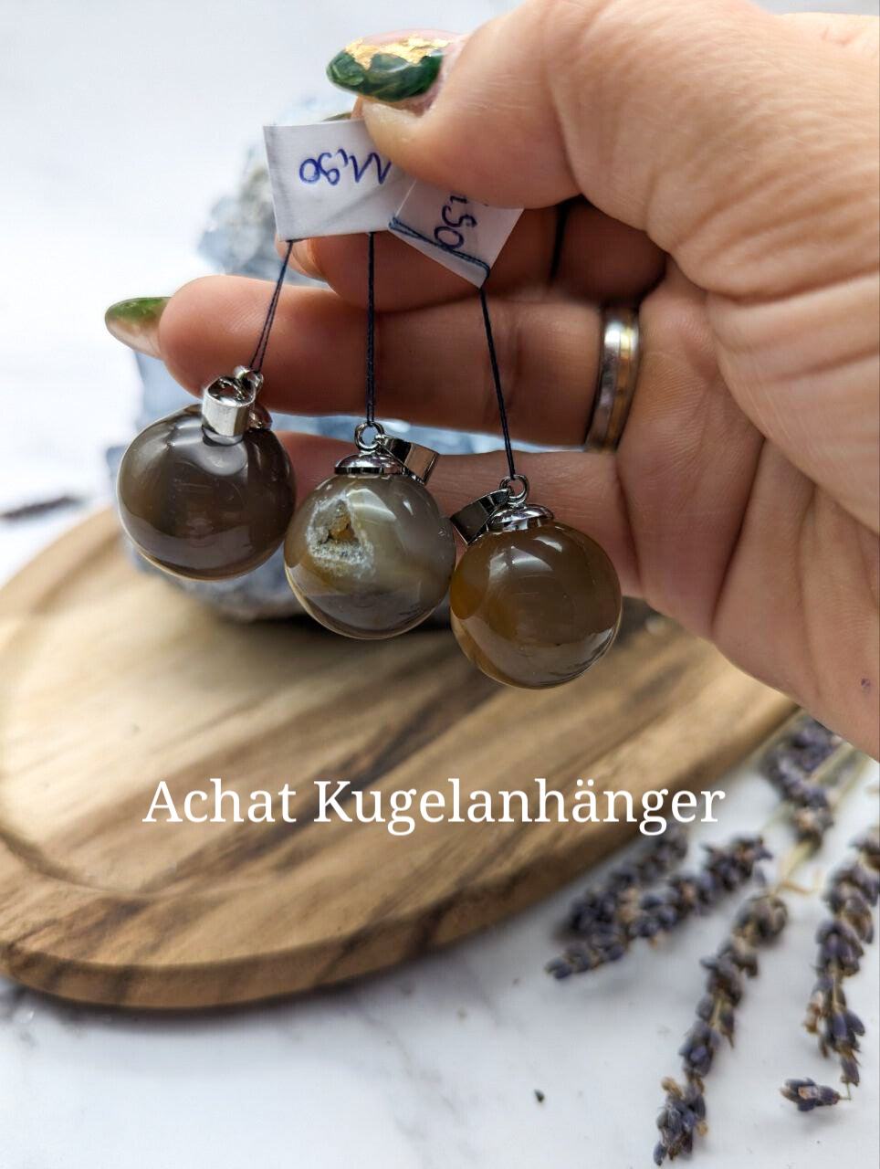Dieser wunderschöne Achat-Kugel-Anhänger ist ein echtes Unikat. Die sanften Farbverläufe und natürlichen Muster machen jeden Anhänger einzigartig.