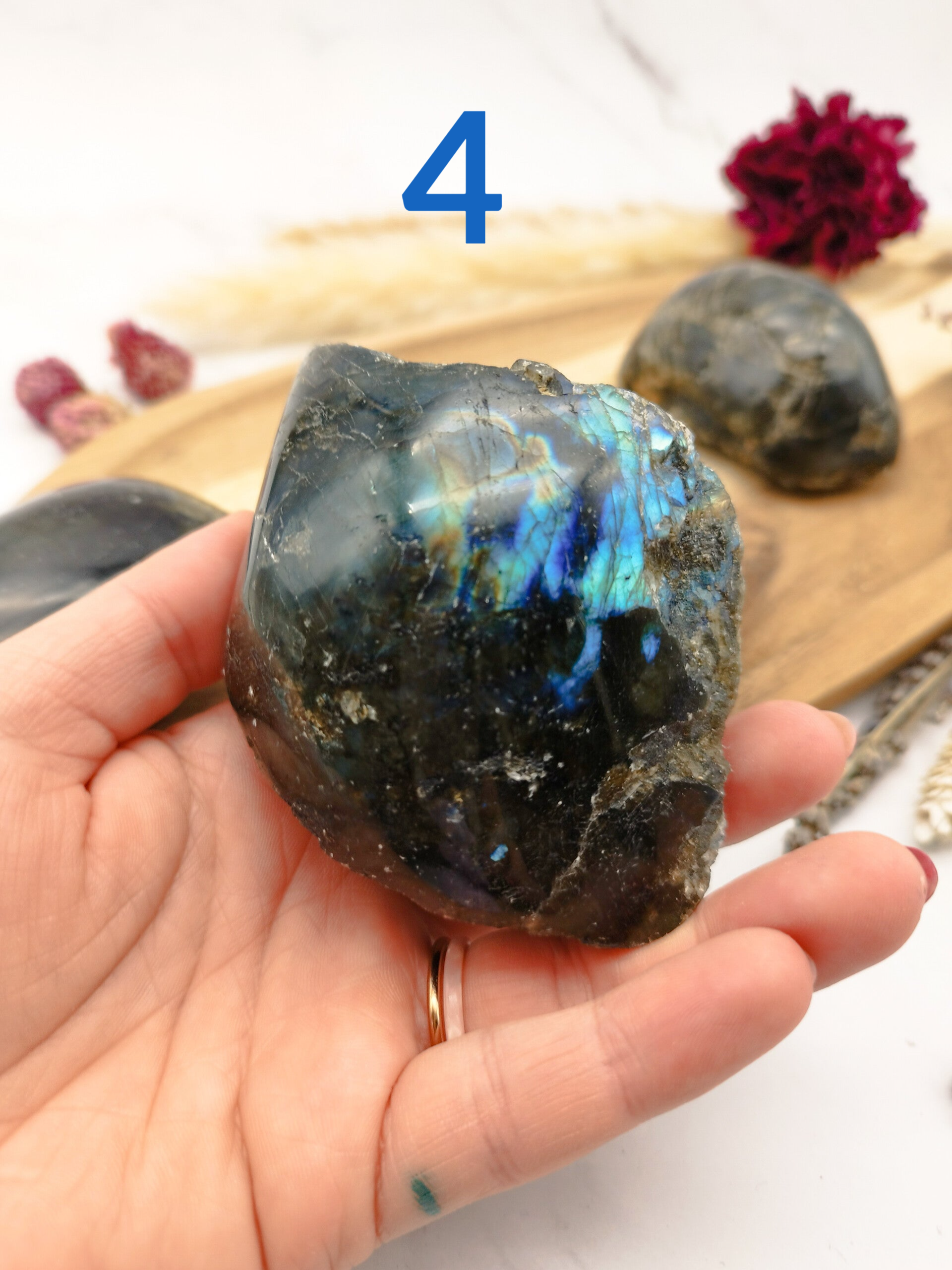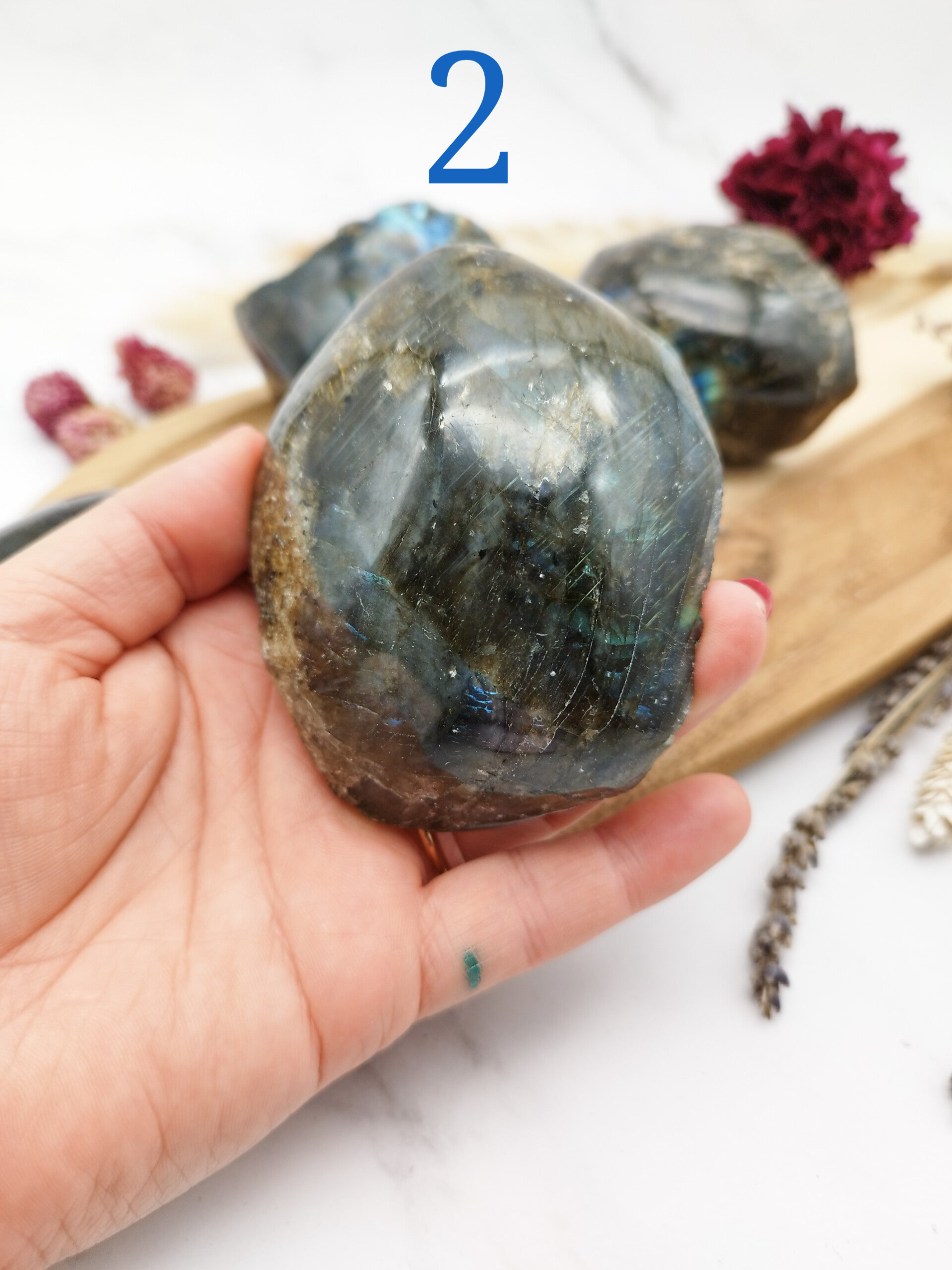 Jedes polierte Labradorit Stück ist ein Unikat, mit einzigartigen Farbvariationen und Oberflächen. Diese Steine wurden sorgfältig ausgewählt, um höchste Qualität und energetische Reinheit zu gewährleisten.