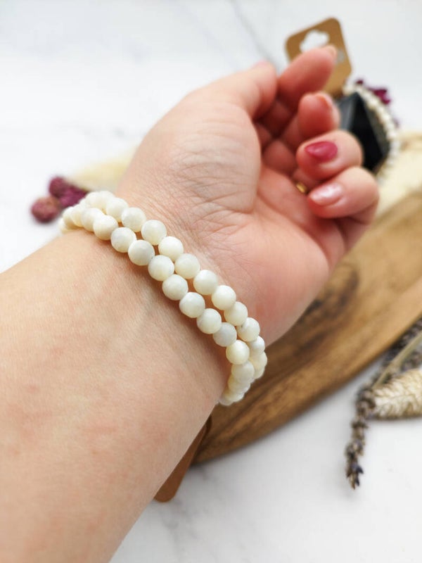 Das elastische Band sorgt für angenehmen Tragekomfort, während die facettierten 6mm-Kugeln ein elegantes Funkeln verleihen. Jedes Perlmutt-Armband ist ein einzigartiges Schmuckstück, das zeitlose Schönheit und spirituelle Energie vereint.