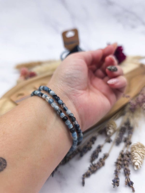 Dieses filigrane Armband aus facettierten Aquamarin-Würfeln schimmert in zarten Blautönen, wie das Meer an einem sonnigen Tag.