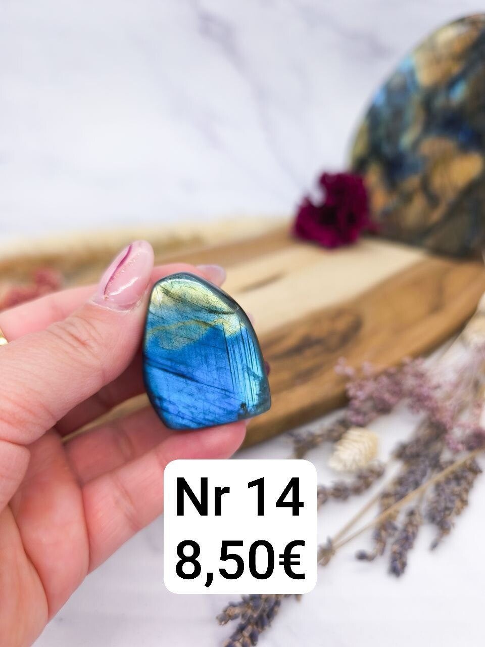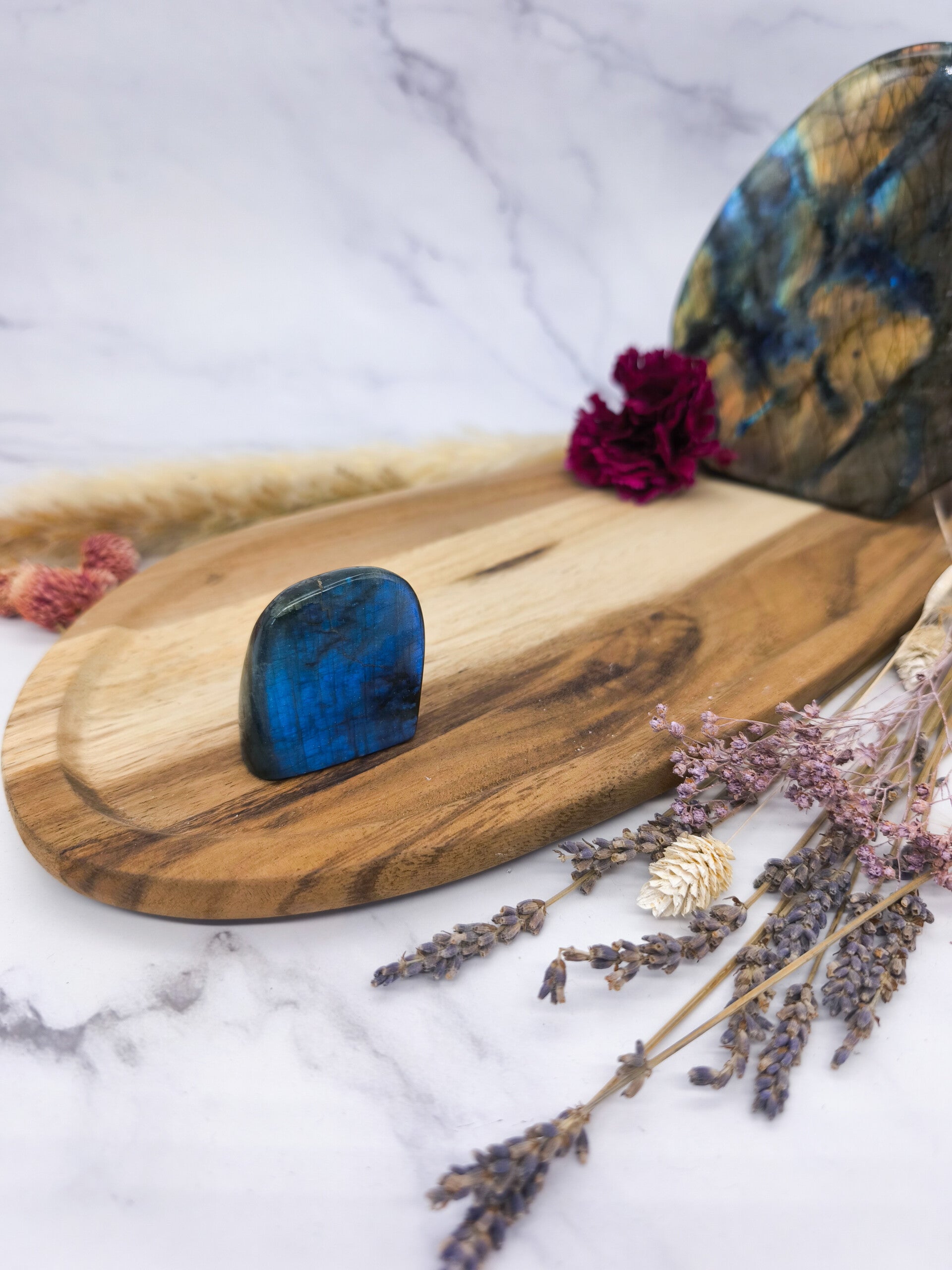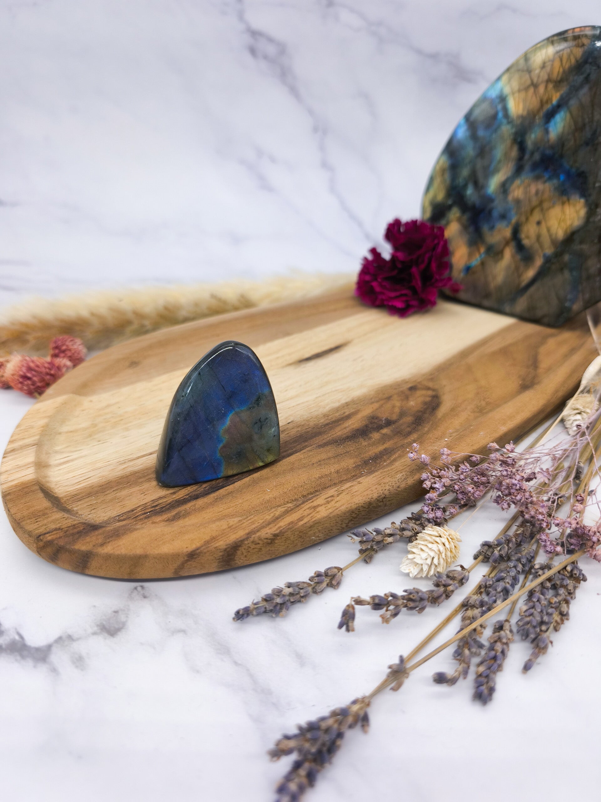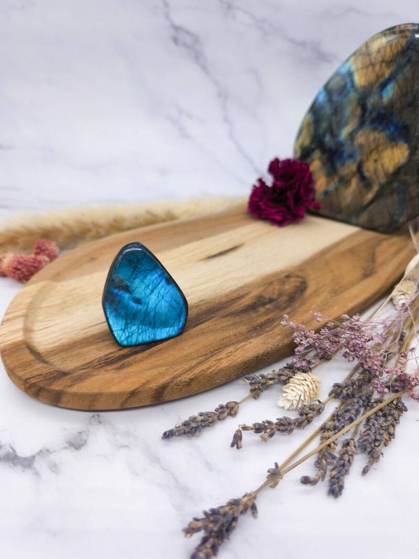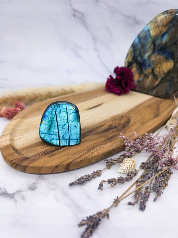 Der Labradorit harmonisiert den Raum, wirkt energetisch schützend und inspiriert zu mehr Kreativität und innerer Ruhe.